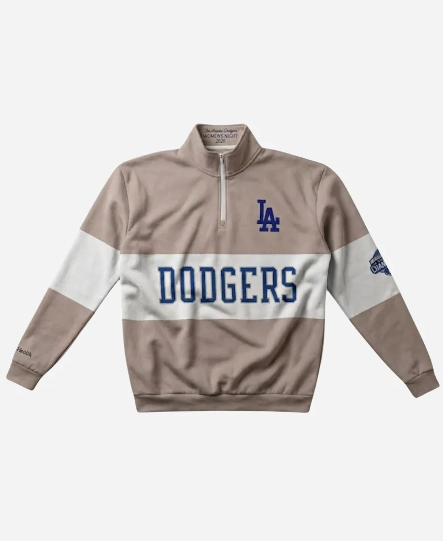 Los Angeles Dodgers 2026 Women’s Night Quarter Zip Beige Sweatshirt