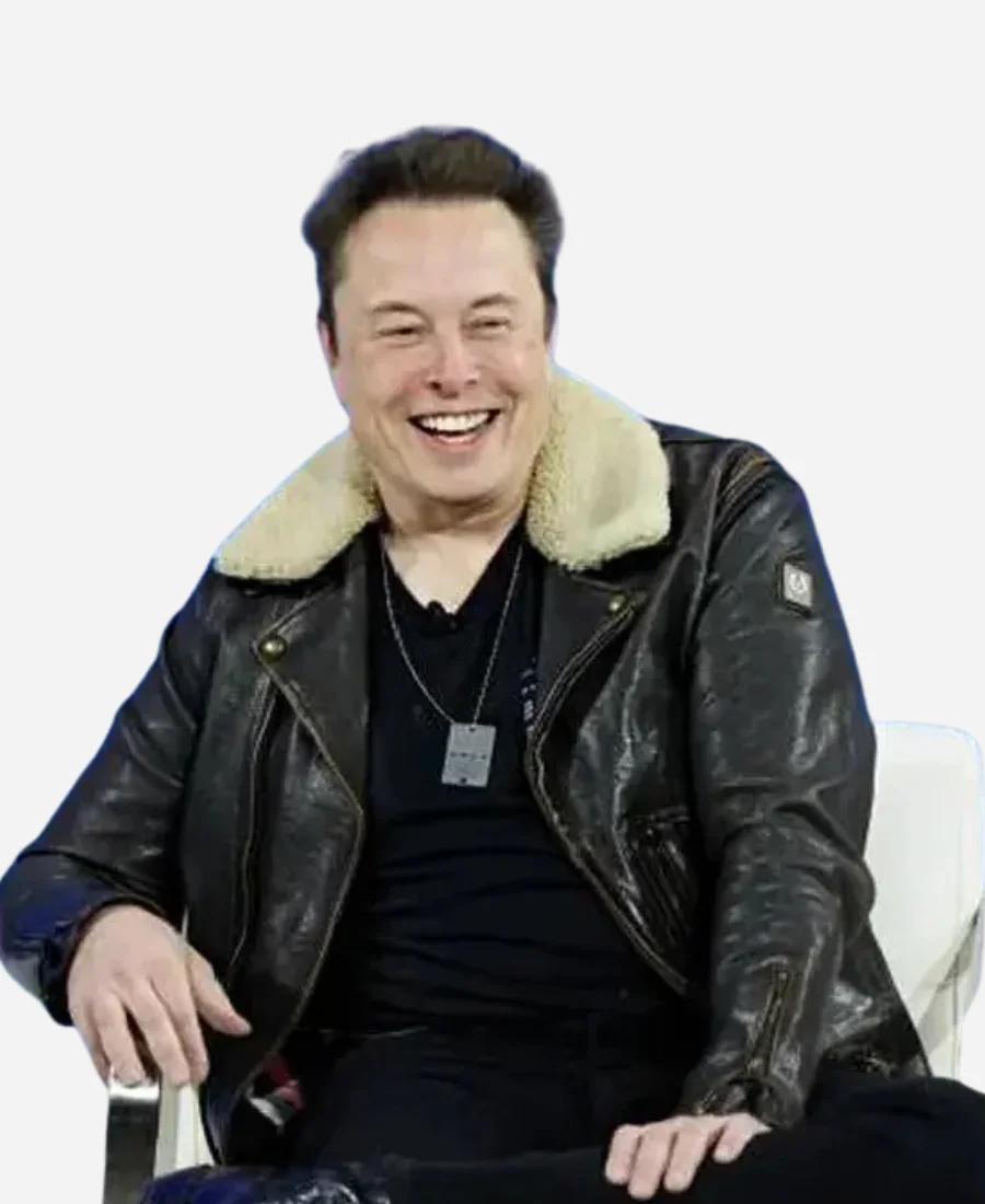 New York Times Conference 2023 Elon Musk Shearling Black Leather Jacket