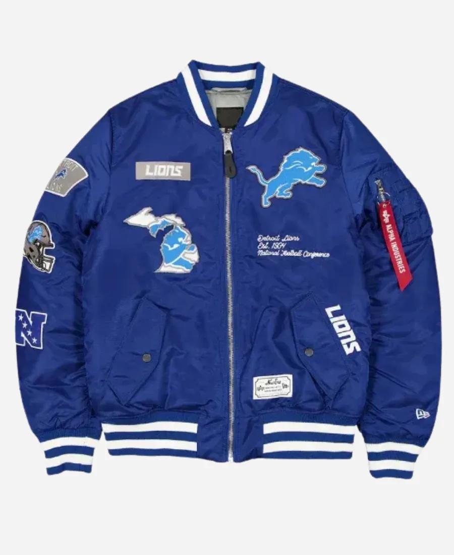 New Era x Alpha Industries Halftime Show Eminem Detroit Lions MA-1 Full-Zip Blue Bomber Jacket
