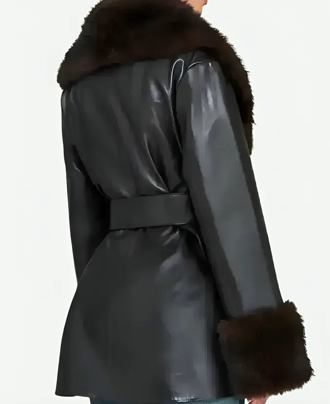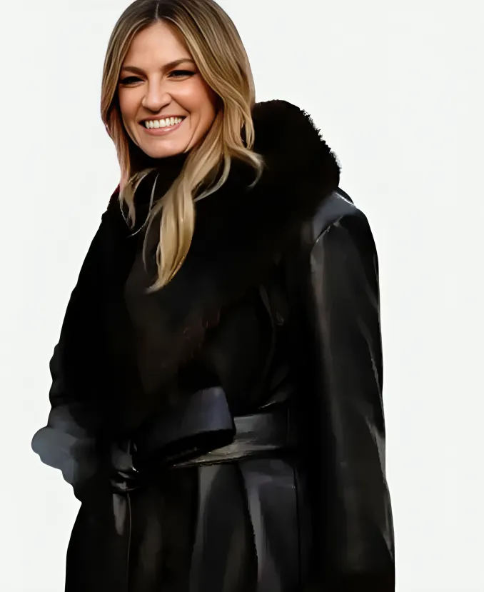 NFC Championship Game 2026 Seahawks vs Rams Erin Andrews Brown Faux Fur Trim Belted Leather Coat