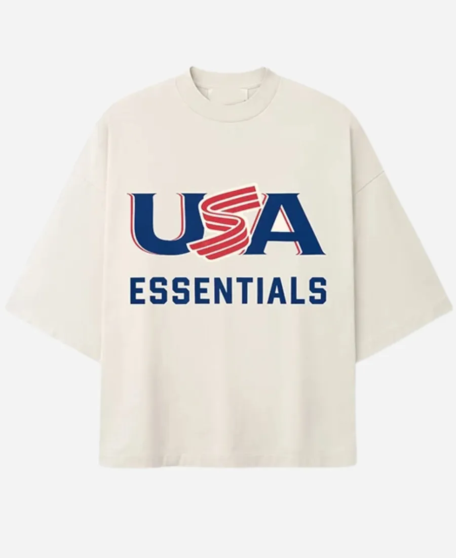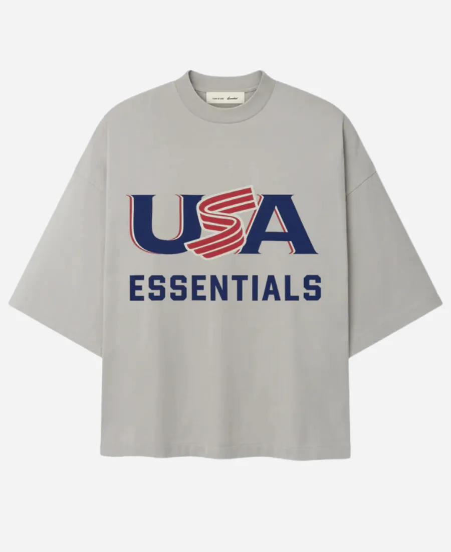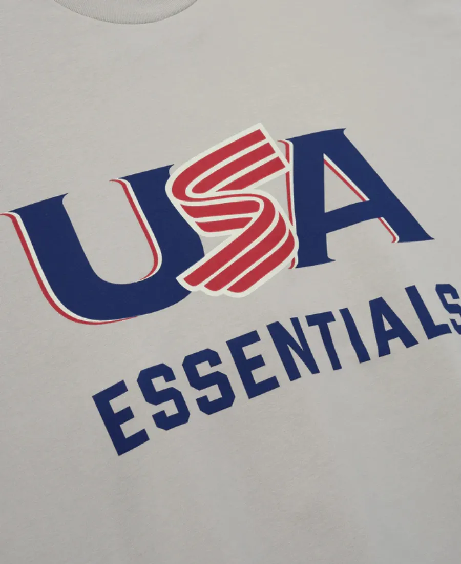 Fear of God Essentials 2026 USA Baseball T-Shirt – White, Grey & Light Blue