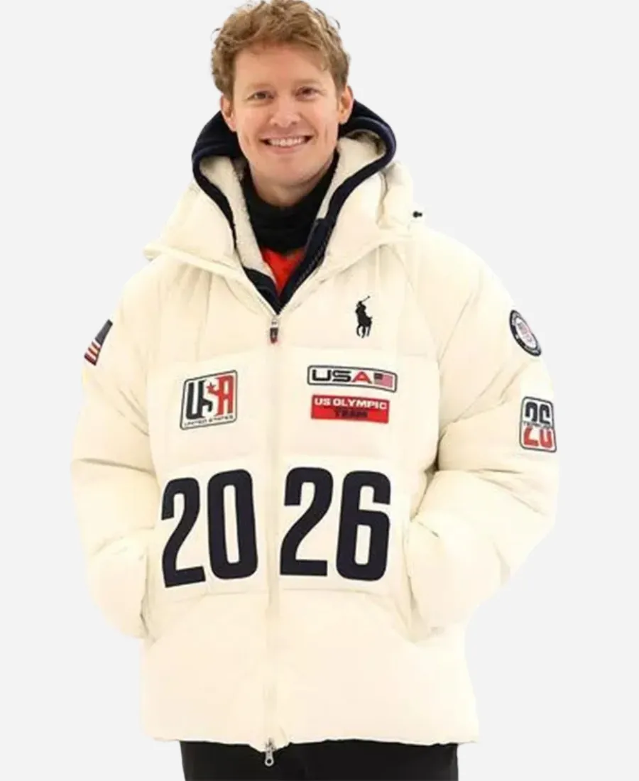 To help you comfortably and stylishly captivate the spirit of American excellence. The Jacket Era is here with a trendy and breathtaking white jacket. Introducing you to the white beauty full of modern appeal, the Evan Bates Olympics 2026 Team USA Jacket. For the die-hards of Evan Bates, the handsome American ice dancer, we are here with this gorgeous white jacket. Furthermore, this cute white flagbearer jacket originates from the American fashion brand Polo Ralph Lauren for the participants of the 2026 Olympic Team USA. Our favorite Evan Bates wears this sassy flagbearer jacket at the Milano Cortina 2026 Winter Olympics. On the other hand, modeling this white Team USA masterpiece, Evan Bates makes a powerful style statement. So, to boost your daily wear with contemporary glam and Team USA vibes, this flagbearer jacket is the best option.