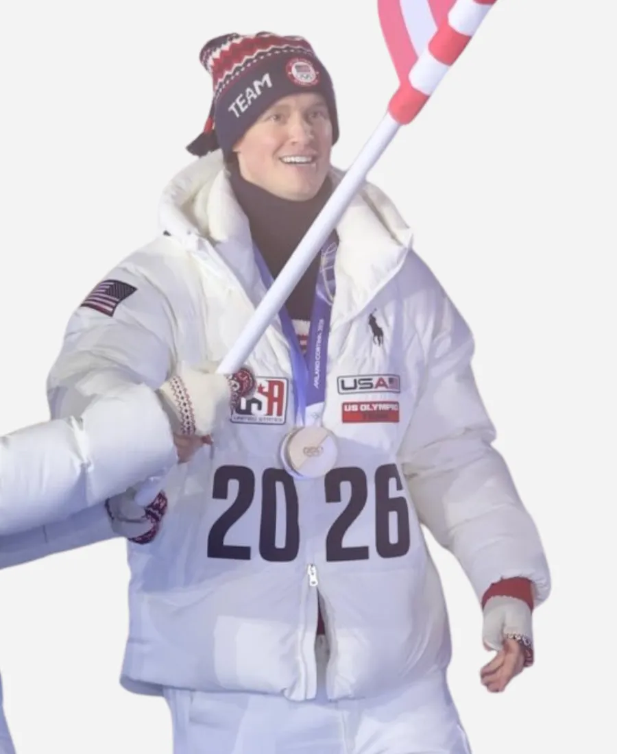 Purchase this Milano Cortina 2026 Winter Olympics Evan Bates Team USA Flagbearer Jacket now from here at an exciting sale price.