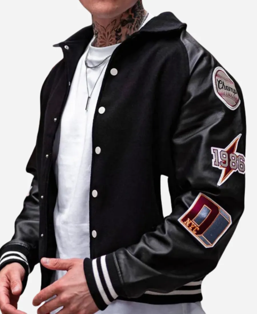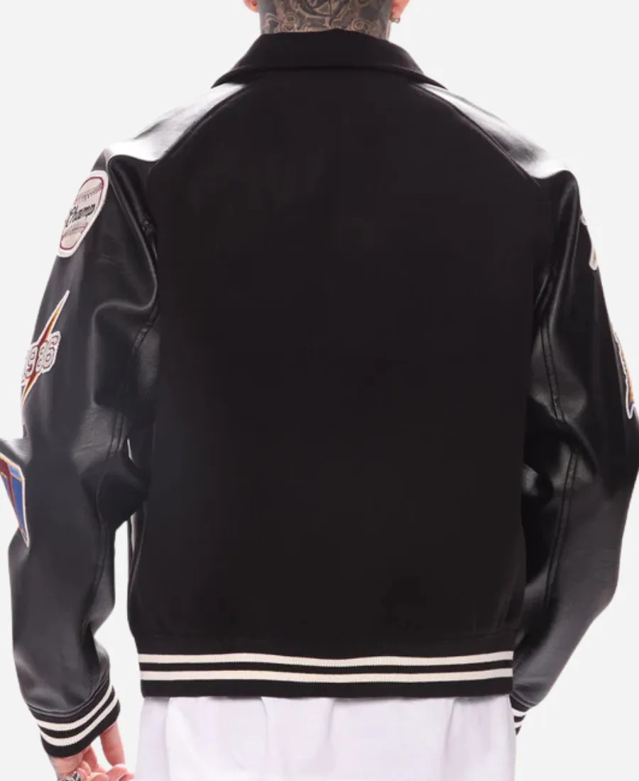 Unisex Fashion Nova All Around The World Black Wool & Leather Varsity Jacket