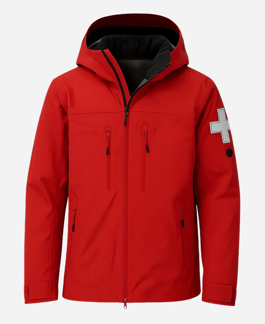 Robbie Simpson Tv Series Finding Mr. Christmas S02 Ski Patrollers Red Hooded Jacket