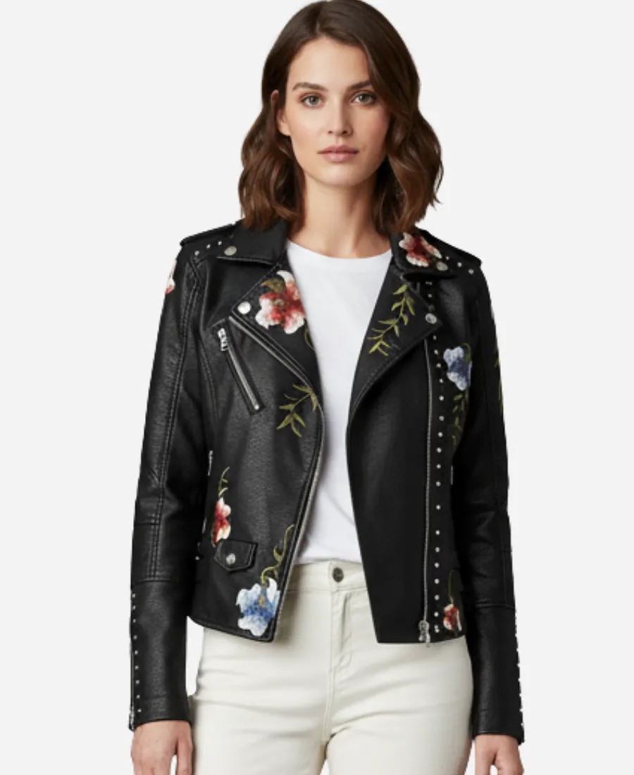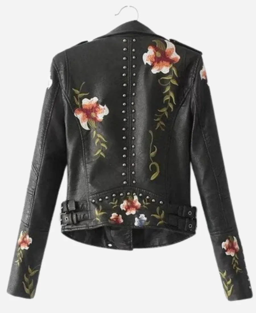 Floral Black Leather Jacket