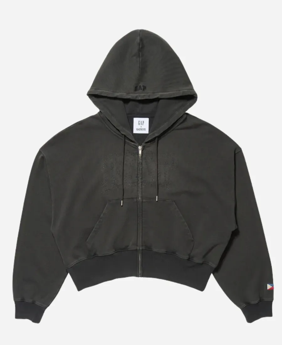 Where streetwear meets pop power, this GAP x KATSEYE hoodie defines festival-ready style. Introducing you to the classy GAP x KATSEYE Sophia Hoodie. A hoodie that helps you stylishly and comfortably channels Sophia’s effortless cool and the electric energy of Coachella. Furthermore, this sassy black zip-up hoodie is a part of an iconic collaboration between GAP (a well-known global fashion brand) and Katseye (a girl group based in Los Angeles). The gorgeous Filipino-American singer, Sophia Laforteza, wears this alluring black zip-up beauty. This collaborative black creation is a part of the merchandise launch to celebrate the group’s debut performance at the 2026 Coachella Music Festival. On the other hand, it is now available as an imitation in Jacket Era’s latest collection. So, grab this black masterpiece now to bring a bold attitude to your everyday wear!