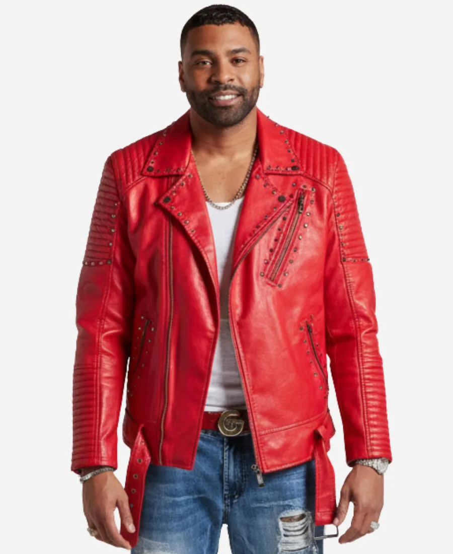 American Singer Ginuwine Studded Red Leather Jacket – For Sale