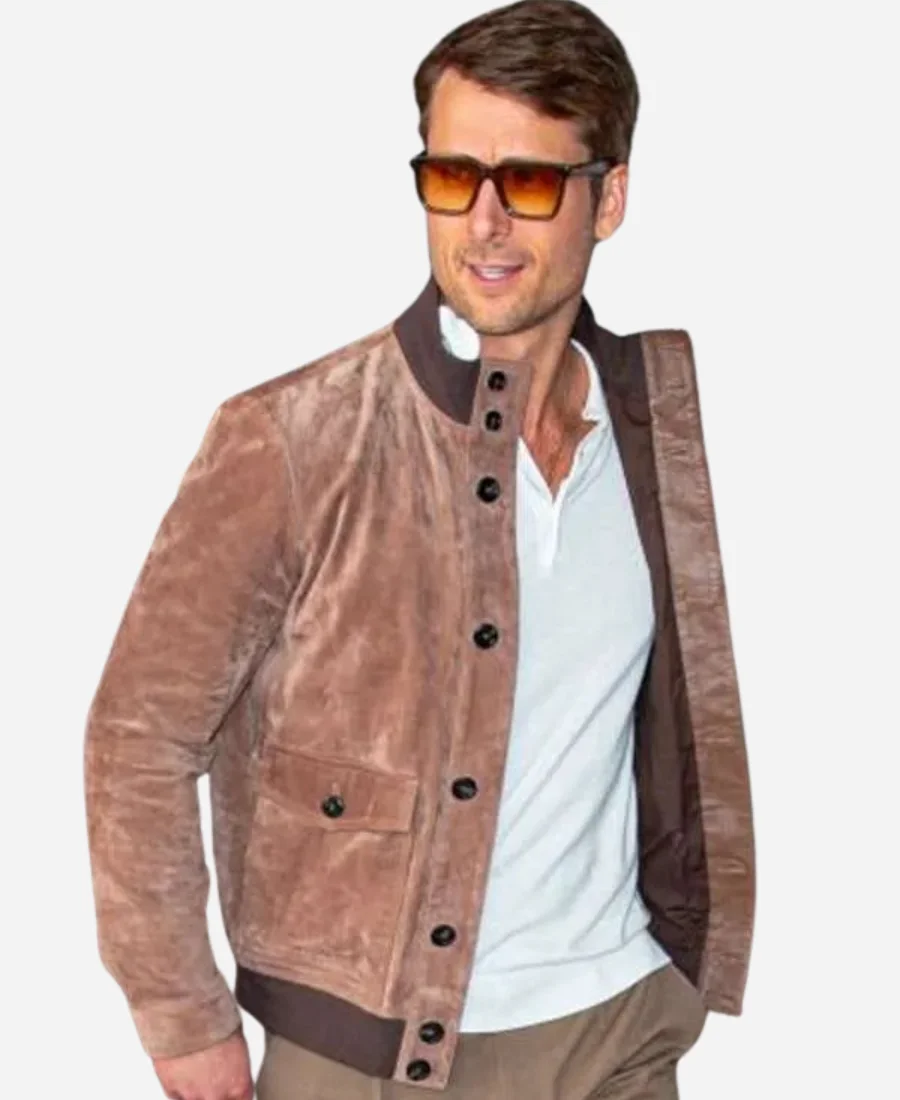 The Drew Barrymore Show 2024 Glen Powell Brown Suede Jacket For Sale