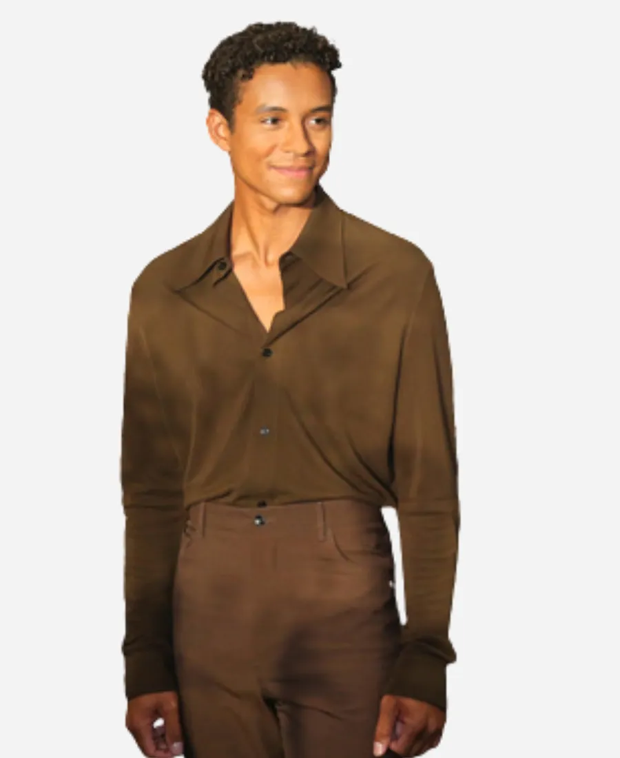 Blending classic tones with contemporary flair. This brown shirt from the Michael 2026 premiere press tour sets a calm yet powerful fashion statement. Whether it is a formal meeting or a family function, this shirt is the best to look pristine without trying too hard. Moreover, this Jaafar Jackson Brown Shirt is now available at the Jacket Era. It is available here in premium cotton fabric in different sizes. To make this shirt easy and comfortable to wear, it comes with a front-buttoned closure. The long sleeves with button cuffs make this brown shirt complete to look at, providing you with a smart fit. However, the turn-down collar plays an important role in adding to its aesthetic glam. Thus, grab it now to flow with subtle elegance and sharp presentation.