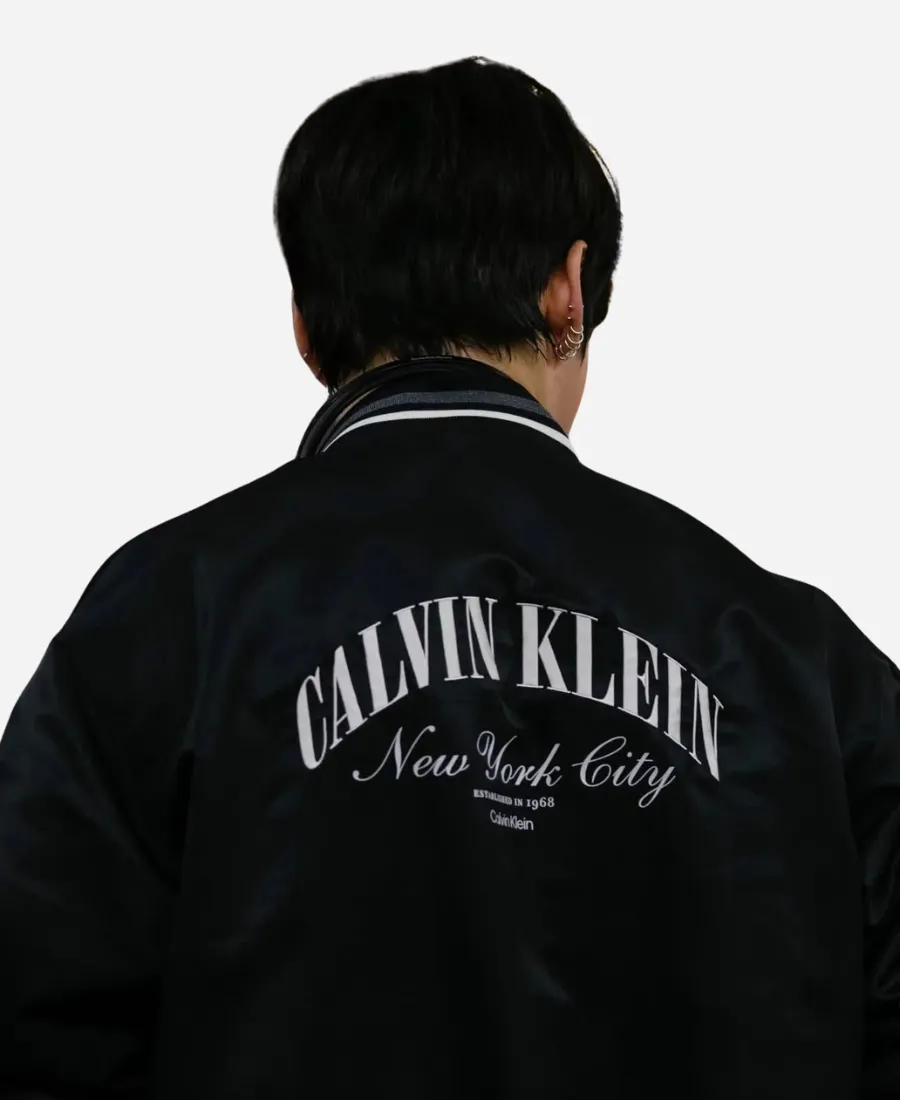 Calvin Klein Spring 2026 Jung Kook Black Varsity Bomber Jacket