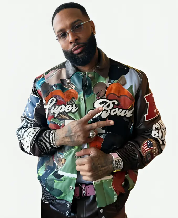 When two legendary fashion icons collide, the magic happens, and we get alluring results. This fabulous Jeff Hamilton KidSuper FW26 Jacket is an ideal example. Those who want to wear the 2026 NFL Super Bowl with premium comfort and contemporary style will love this exclusive collaborative jacket. Moreover, it comes from the collaboration between the fashion brand KidSuper (Colm Dillane) and the well-known Moroccan celebrity fashion designer, Jeff Hamilton. Our favorite American football wide receiver, Odell Cornelious Beckham Jr., aka OBJ, wears this glamorous jacket. On the other hand, he styles this eye-catching collaborative masterpiece while arriving at Super Bowl LX. Wearing this jacket, OBJ’s bold appearance makes a powerful style statement. So, to capture his stylish attitude with the modern artwork, this varsity jacket is the best addition.