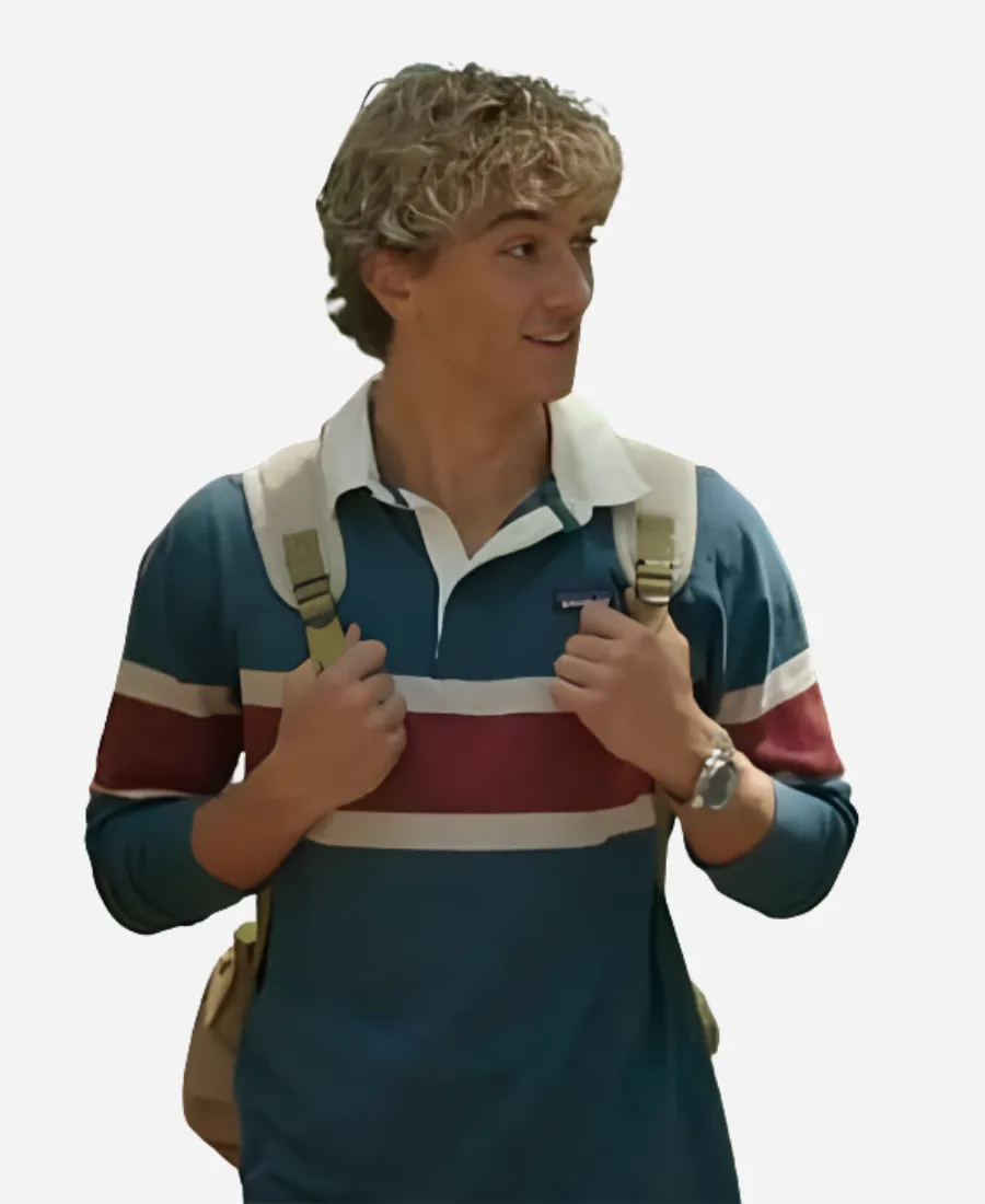 Gavin Casalegno The Summer I Turned Pretty S03 Jeremiah Fisher Blue Rugby Stripe Polo Shirt