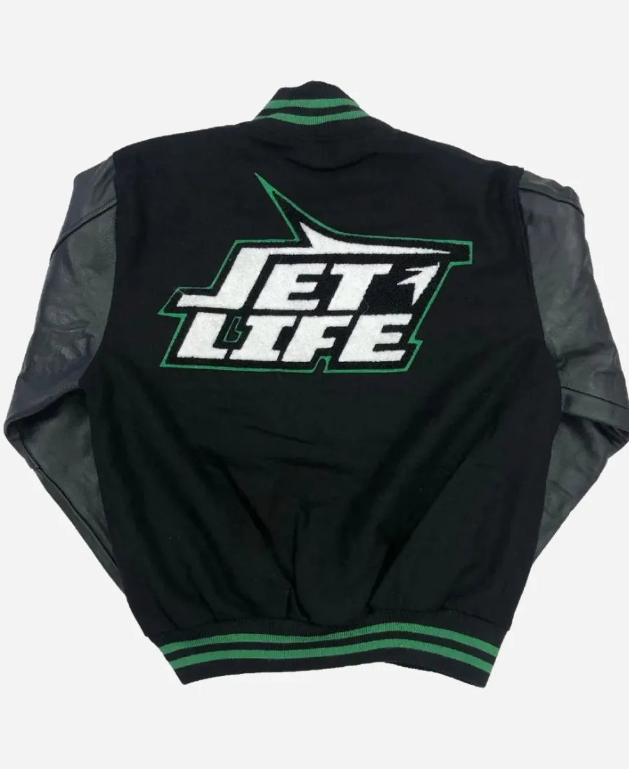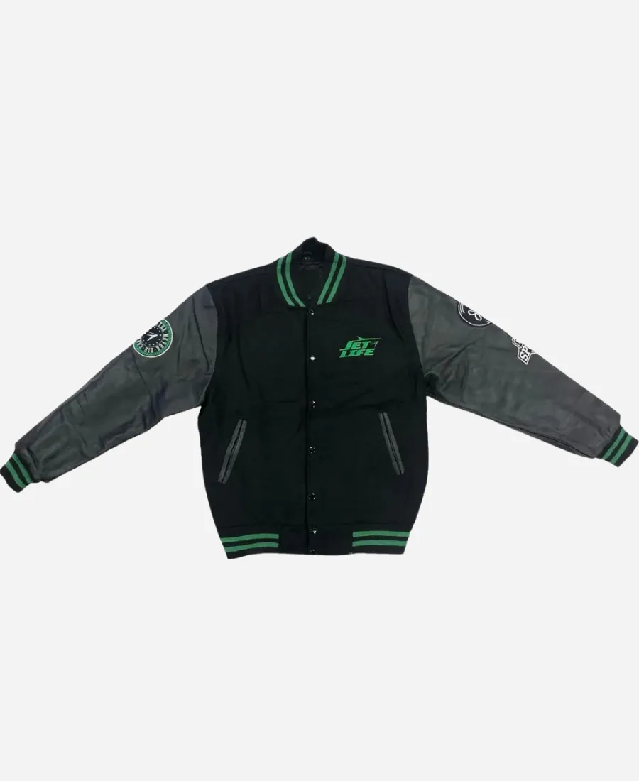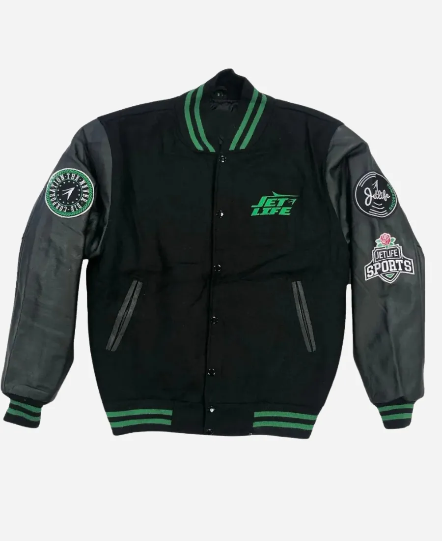 The Never Die Corporation Jet Life Black And Green Varsity Jacket
