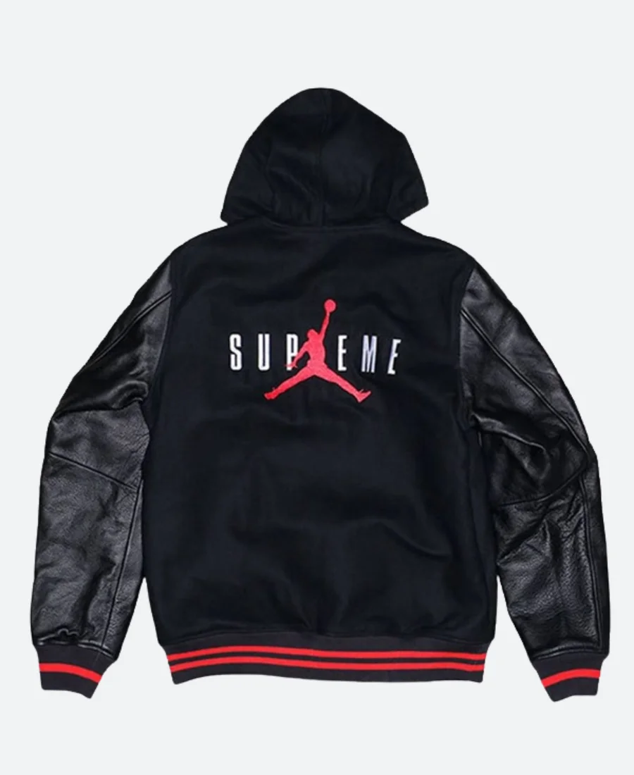 Jordan X Supreme Black Hooded Letterman Varsity Jacket