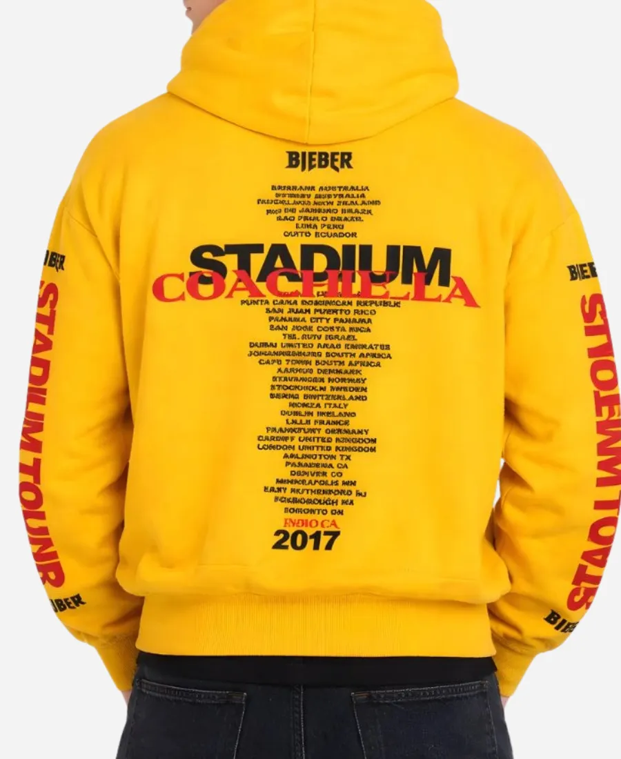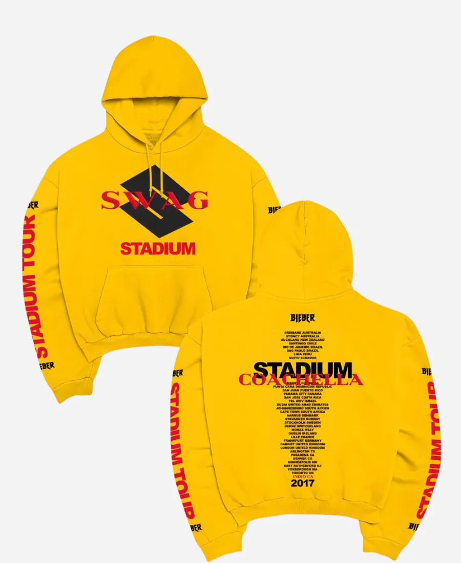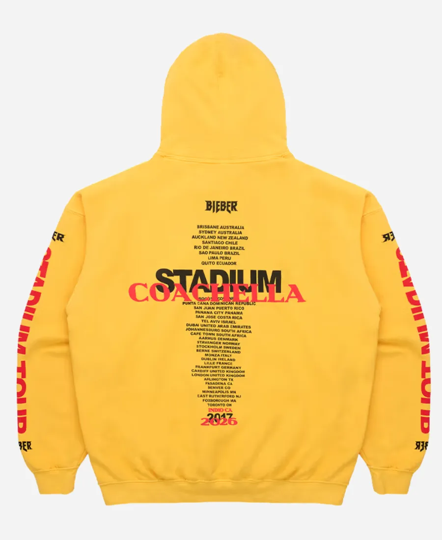 2026 Coachella Weekend 2 Merch Stadium Tour x Swag Justin Bieber SKYLRK Yellow Hoodie