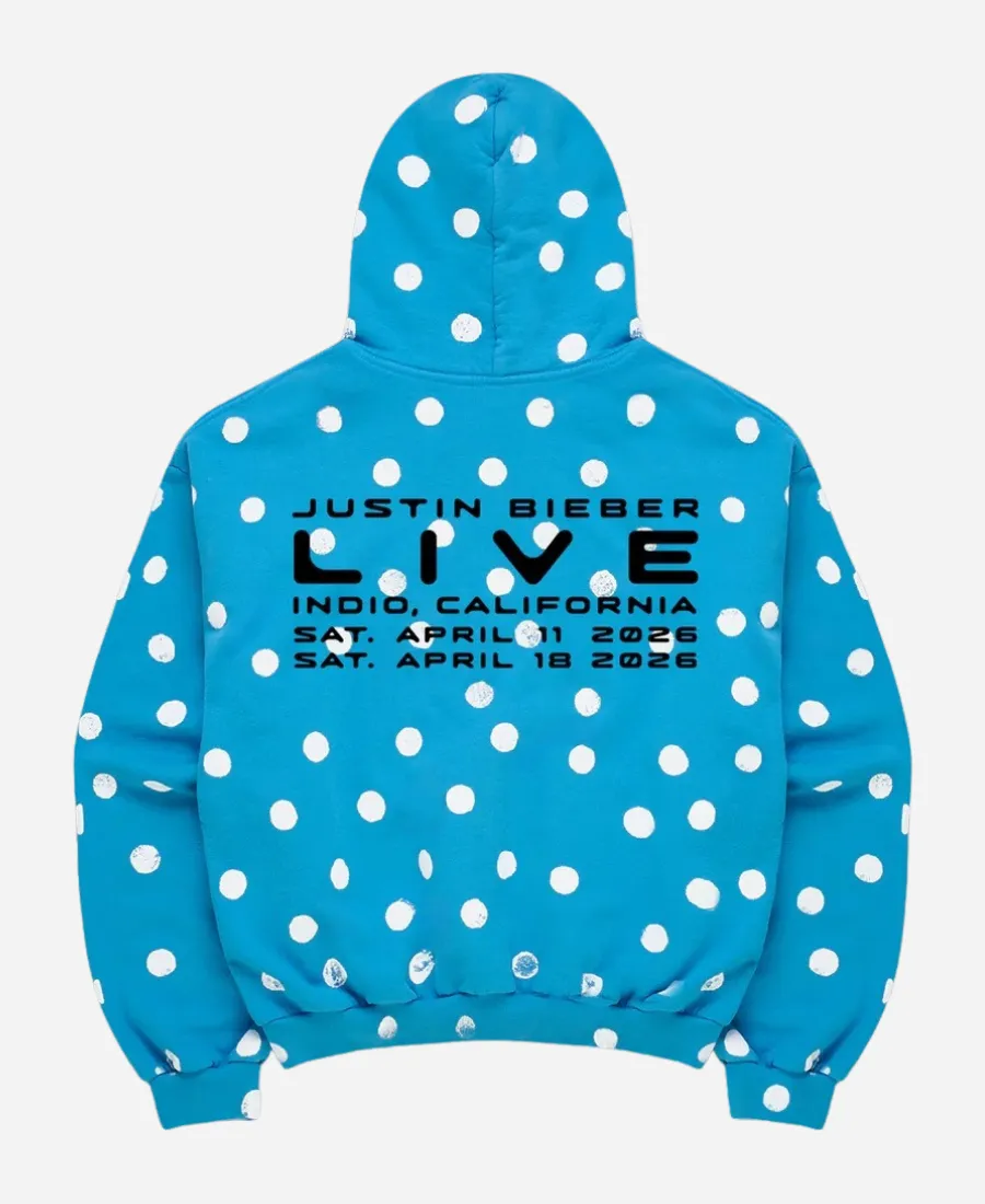 Introducing you to the trendy Justin Bieber Skylrk Spot Hoodie, a statement piece that redefines modern casual fashion. For you all, especially for the fans of the handsome and our favorite Canadian singer, Justin Bieber. The Jacket Era is here with this tempting blue pullover hoodie that is bolder and impossible to ignore. Furthermore, this alluring specific piece of apparel originates from Justin Bieber’s fashion and streetwear brand, SKYLRK. This tempting blue item is a “Bieberchella”-themed merchandise hoodie, released for Justin Bieber’s Coachella performance. On the other hand, this exquisite polka dot blue hoodie is now available at the Jacket Era as an excellent imitation. Not only does this hoodie keep you comfortable, but it also enhances your streetwear game with power and confidence. So, grab it now and steal the spotlight without wearing anything flashy.