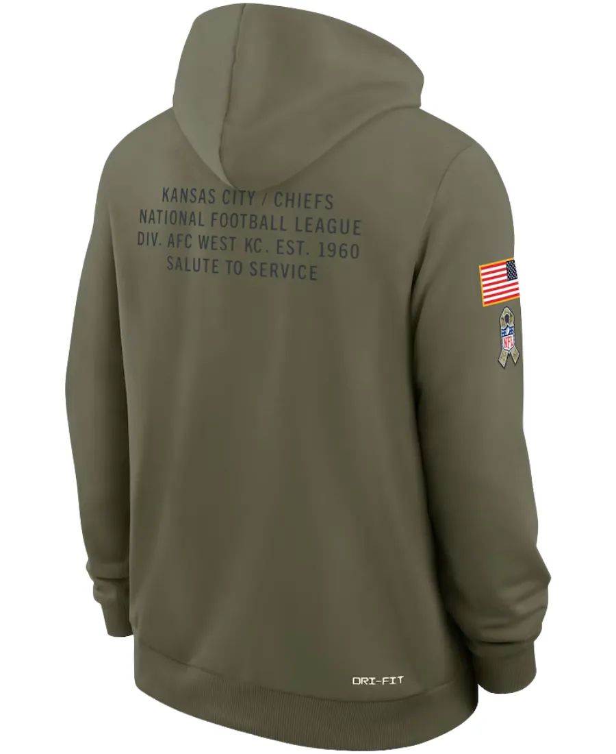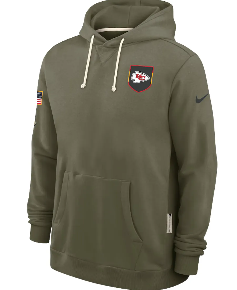 Purchase this Nike x Chiefs 2025 Salute to Service Sideline Olive Green Hoodie now from here at an affordable sale price.