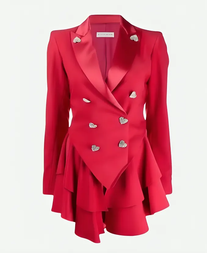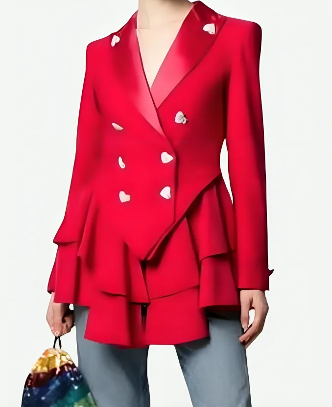 Keeley Ted Lasso S02 Juno Temple Pink Heart Button Wool Blazer