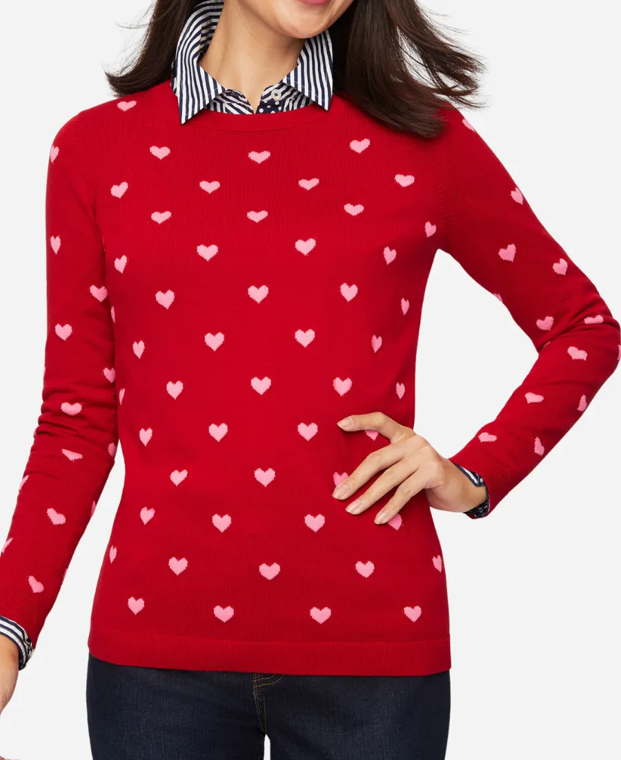 Kelly Ripa Live with Kelly and Mark 2026 Red Hearts Crewneck Sweater