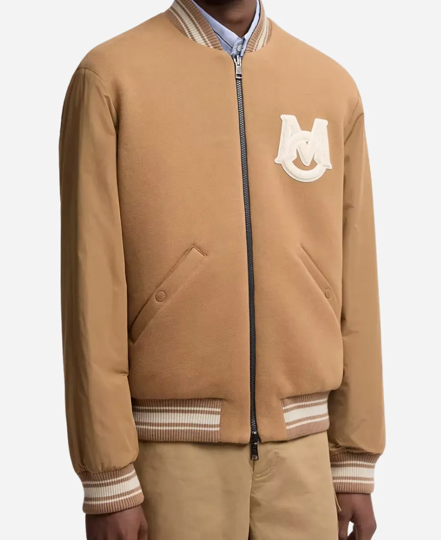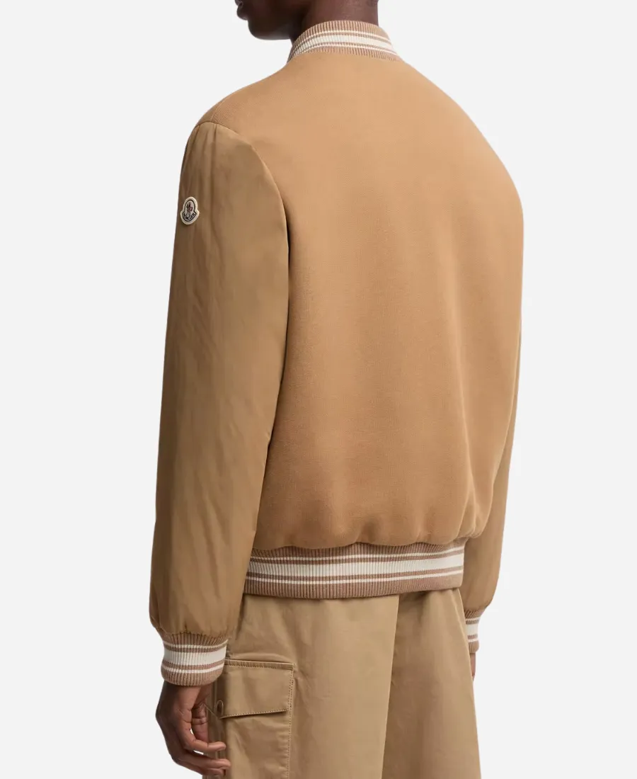 Men’s Brown Bomber Leather Jacket with Rib Collar