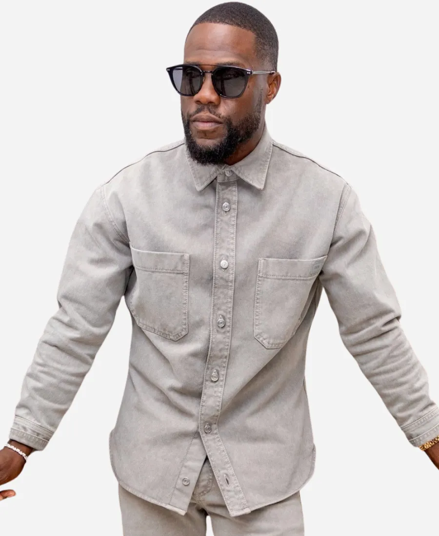 Kevin Hart 2026 CinemaCon Jumanji: Open World Title Reveal Grey Cotton Shirt