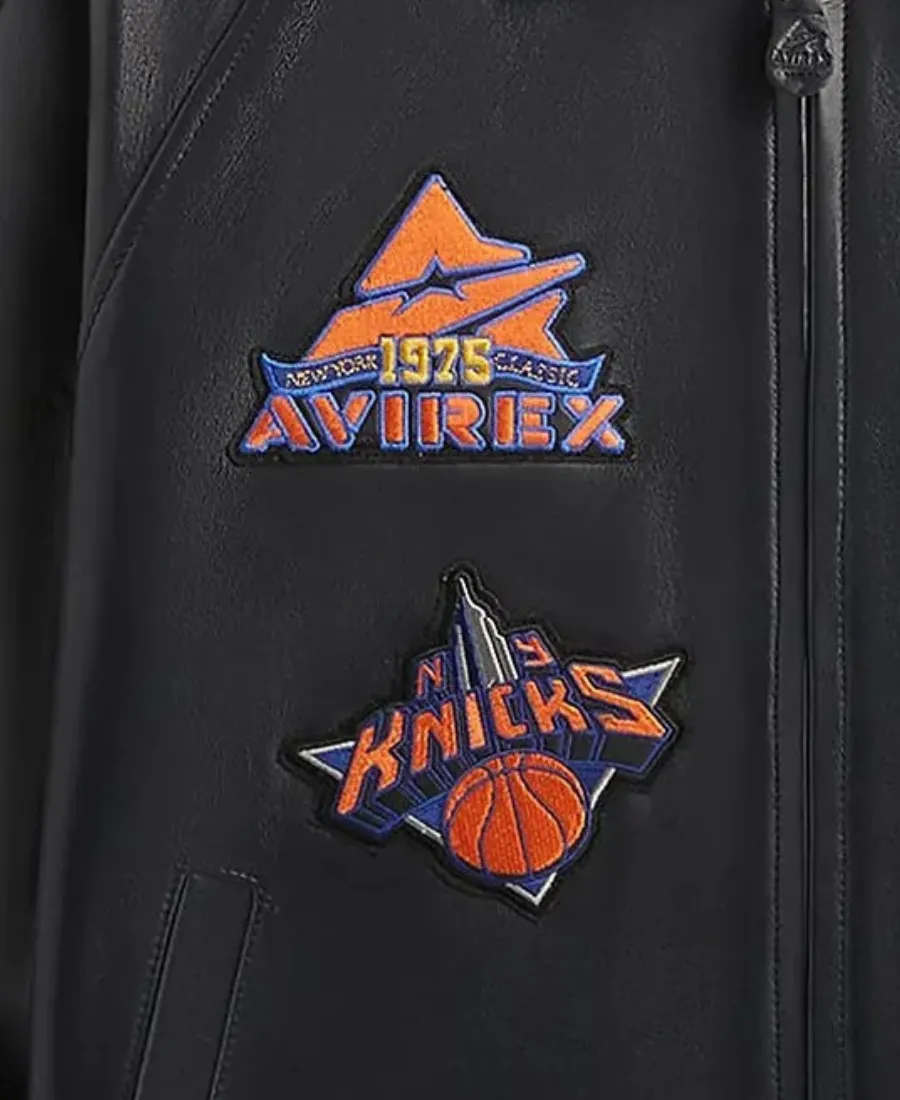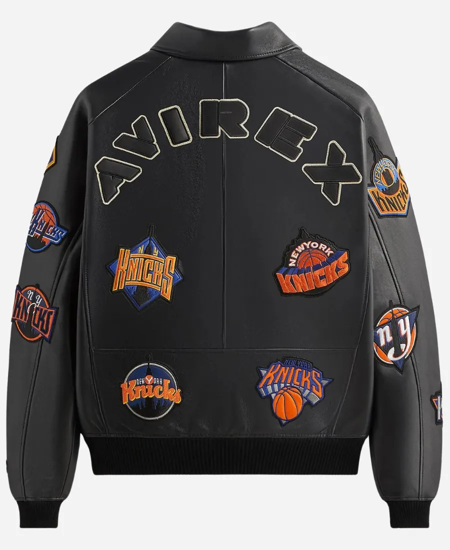 Kith & Avirex New York Knicks Icon Black Bomber Leather Jacket