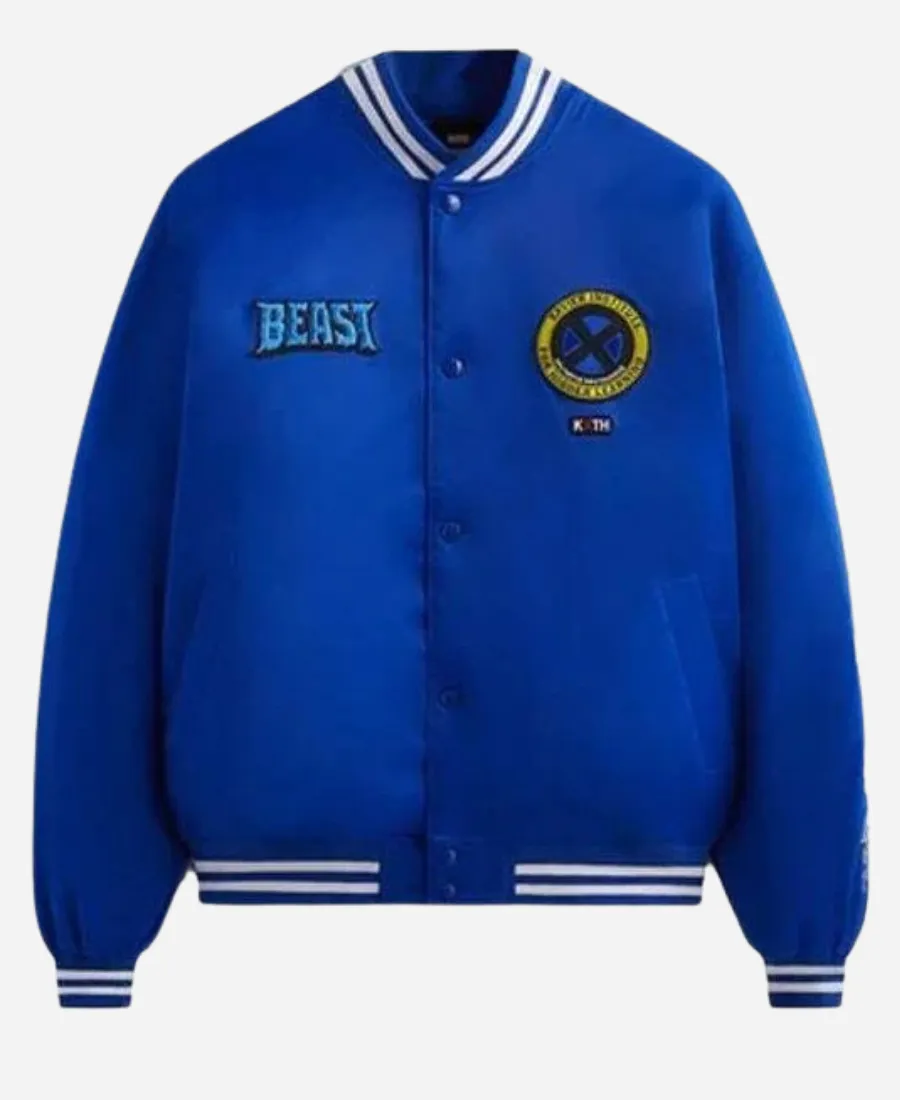 Kith For Marvel X-Men Beast Blue Satin Bomber Jacket