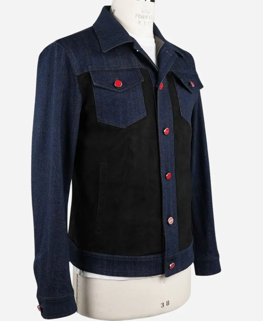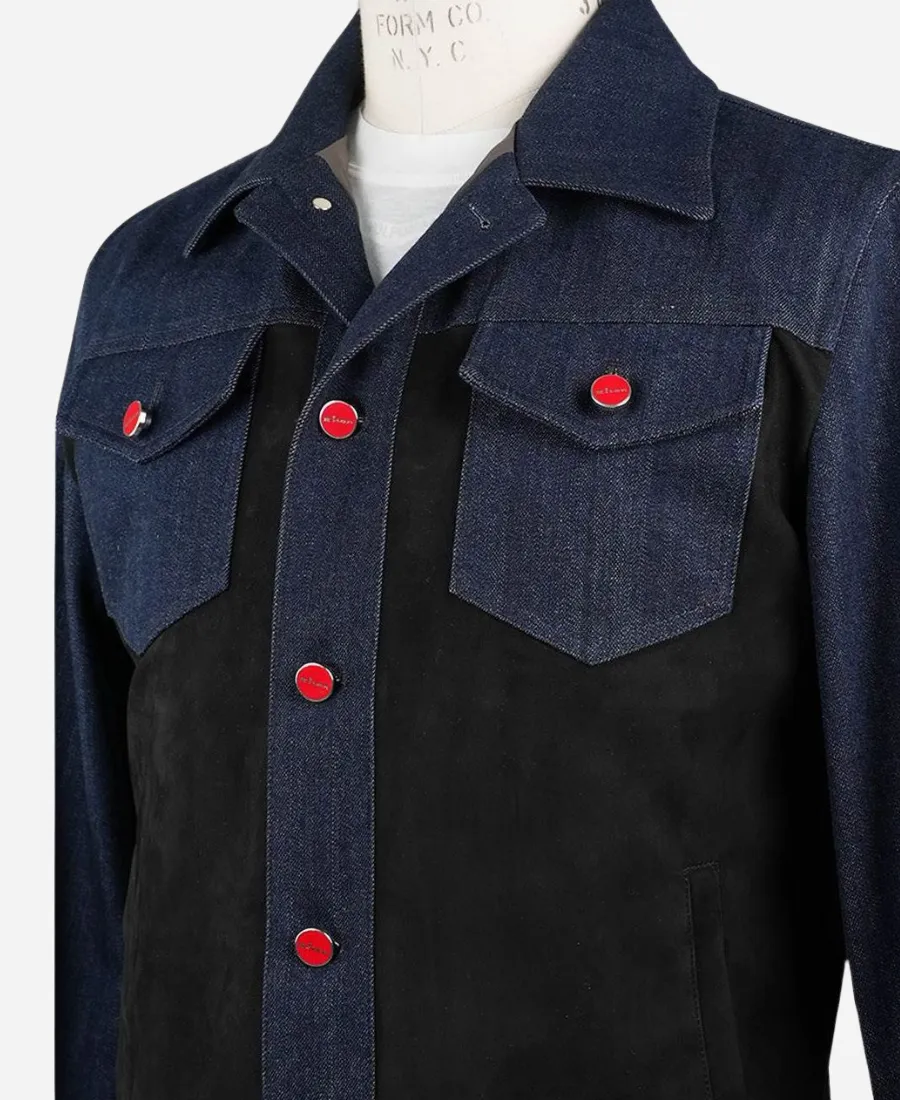 Unisex Kiton Blue & Brown Cotton Ea Suede Leather Denim Coat Jacket