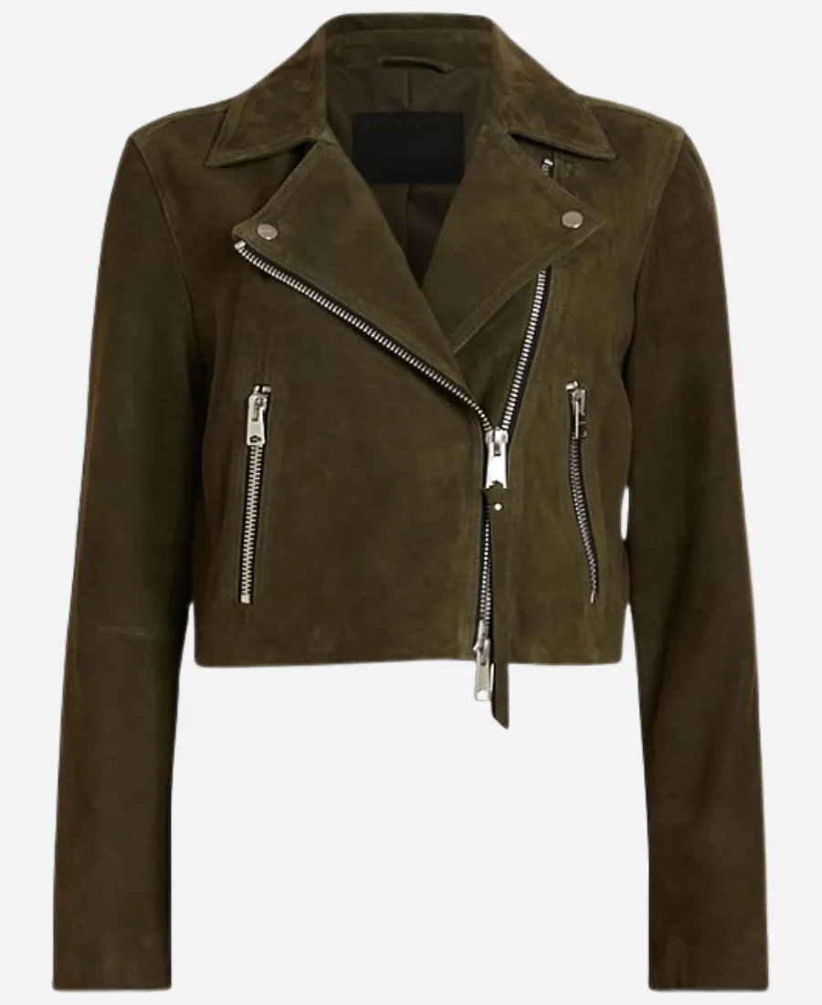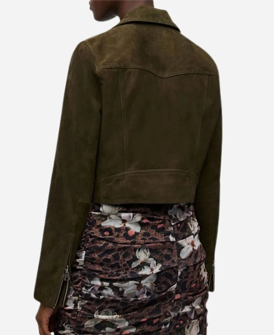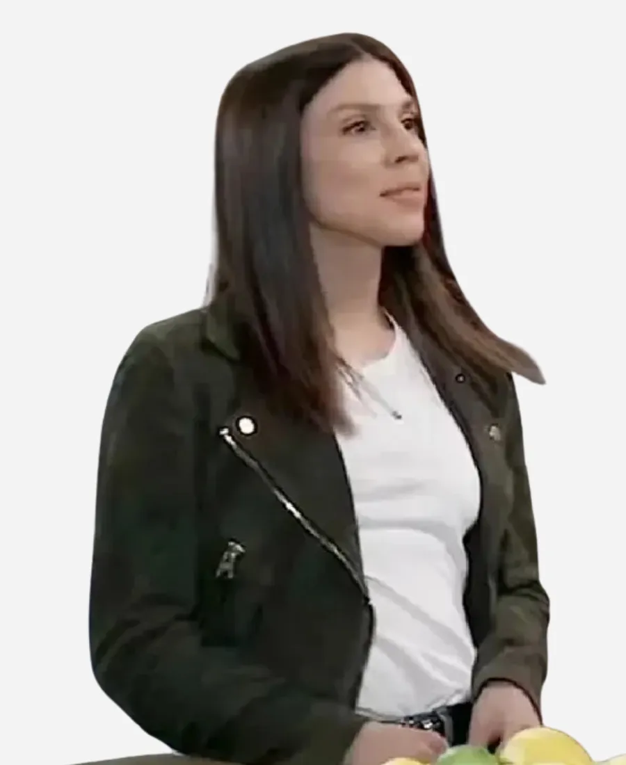 Kristina Corinthos-Davis General Hospital 2026 Olive Green Suede Moto Jacket