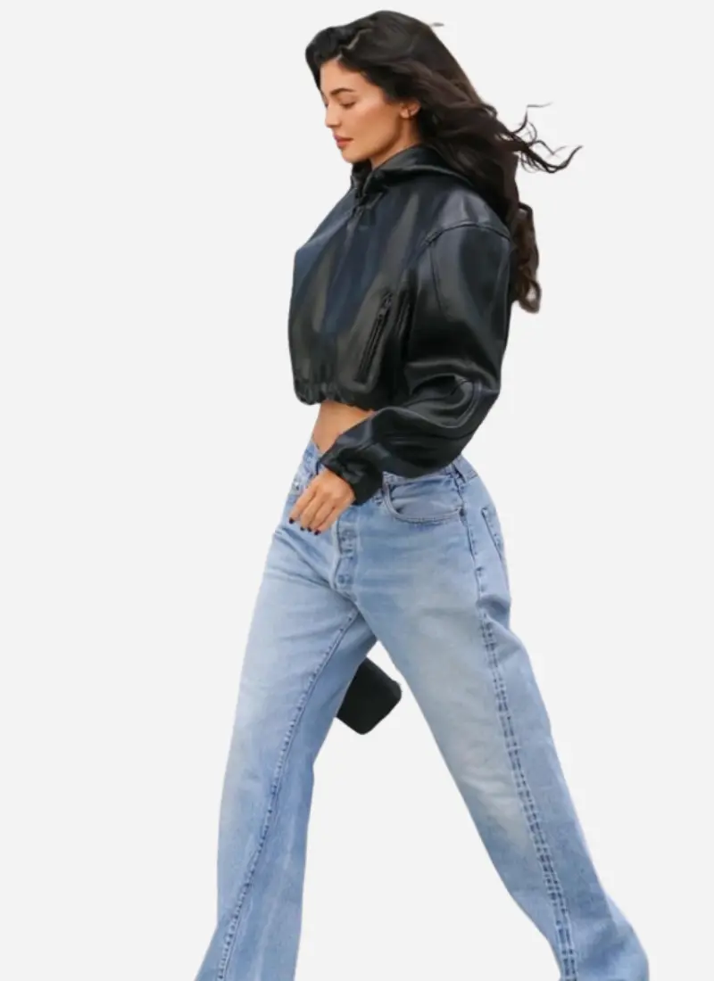 Are you a fan of cropped leather jackets? Want to add a new and trendy piece to your collection? Take a slide into the famous and gorgeous Kylie Jenner Cropped Hooded Leather Jacket. A piece of leather that is full of the modern attitude and classic comfort that you desire. This bold black creation is a must-have to give yourself a fresh new look without trying hard. Furthermore, it comes from the famous brand KHY of the gorgeous American media personality and socialite, Kylie Jenner. This alluring cropped jacket will boost your styling game and make your every move draw attention. On the other hand, it’s the best investment for those fashionistas who want to set a new trend without any fear. Thus, add this black piece now to your collection and steal the show just like a fashion icon does.