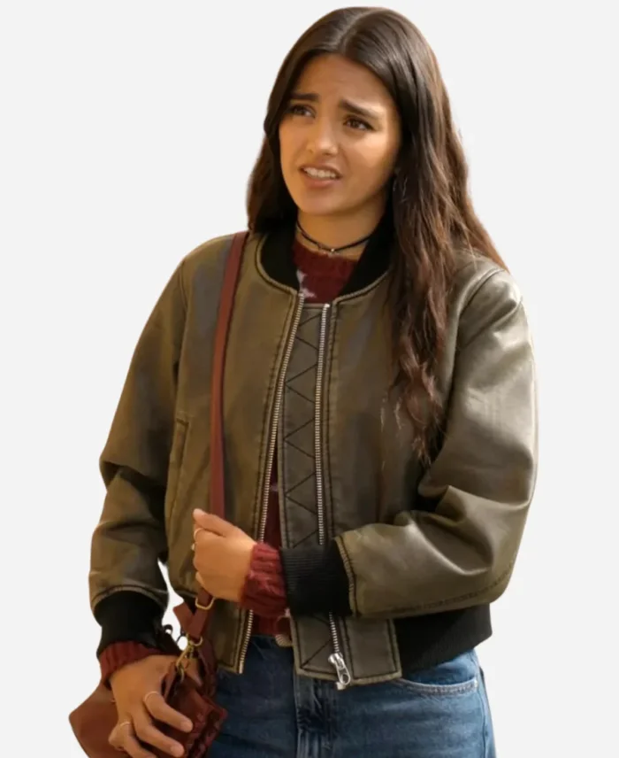 Olivia Movie La Dolce Villa 2025 Maia Reficco Distressed Leather Bomber Jacket