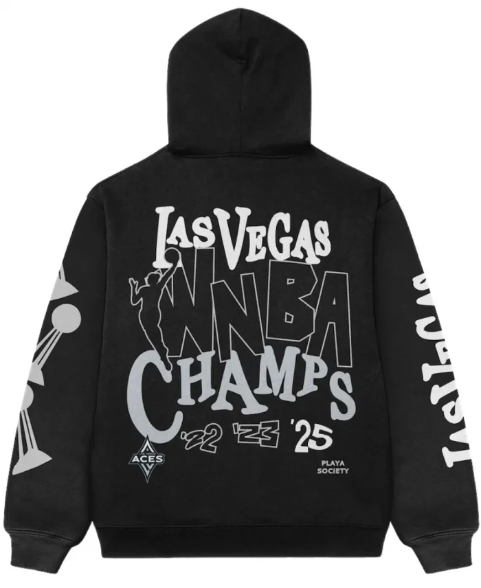 The Las Vegas Aces x Playa Society 2025 WNBA Champions Hoodie is now available at Jacket Era. This cute black creation is here as an imitation in pure fleece fabric in different sizes. Moreover, modeling this chic black hoodie will help you carry the LV Aces pride perfectly with you anywhere, anytime. It is an amazing blend of modern sporty look and streetwear style that makes it the best investment. To make it complete to look at, this hoodie comes with long sleeves, a thick hooded collar, and top-notch ribbed cuffs. However, this pullover outerwear features high-quality LV Aces 2025 WNBA Champions prints that add more to its allure. The branding of the Playa Society at the back adds a premium touch. Thus, make it yours to stylishly portray your love for your favorite women’s basketball team!