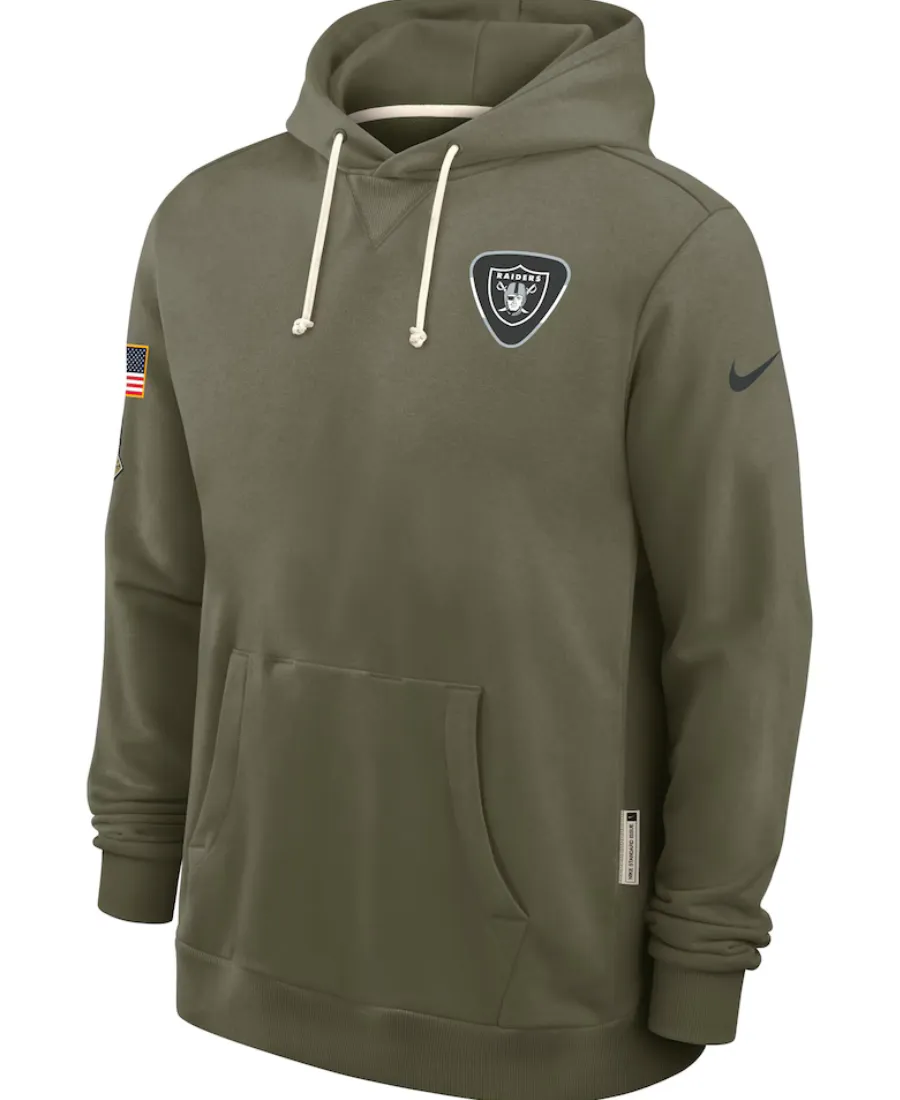Purchase this Nike x Raiders 2025 Salute to Service Olive Green Hoodie now from here at an exciting sale price.