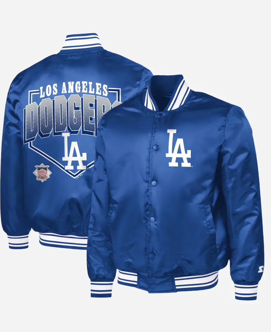 Be the first to review “Los Angeles Dodgers Starter Home Plate Printed Satin Varsity Jacket” Cancel reply