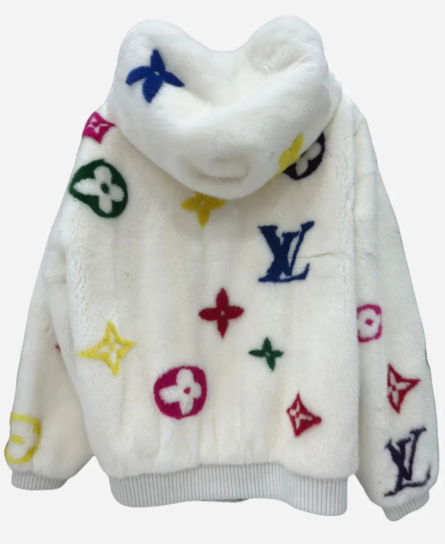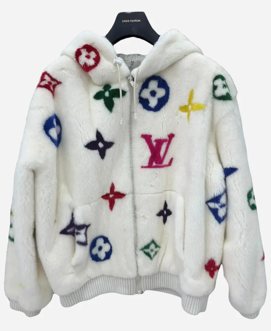Unisex Louis Vuitton Mink Fur Fluffy Hoodie Multicolor Coat