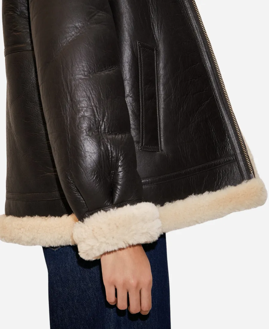 Women’s Mango Shearling lined Faux Leather Bomber Coat Jacket