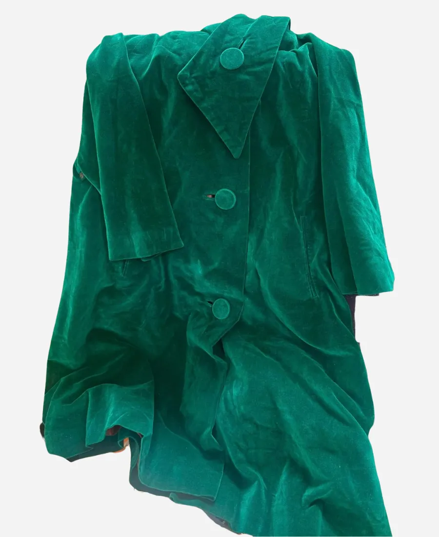 Purchase this 1950s Marguerite Rubel Green Velvet Swing Coat now from here at an affordable sale price.