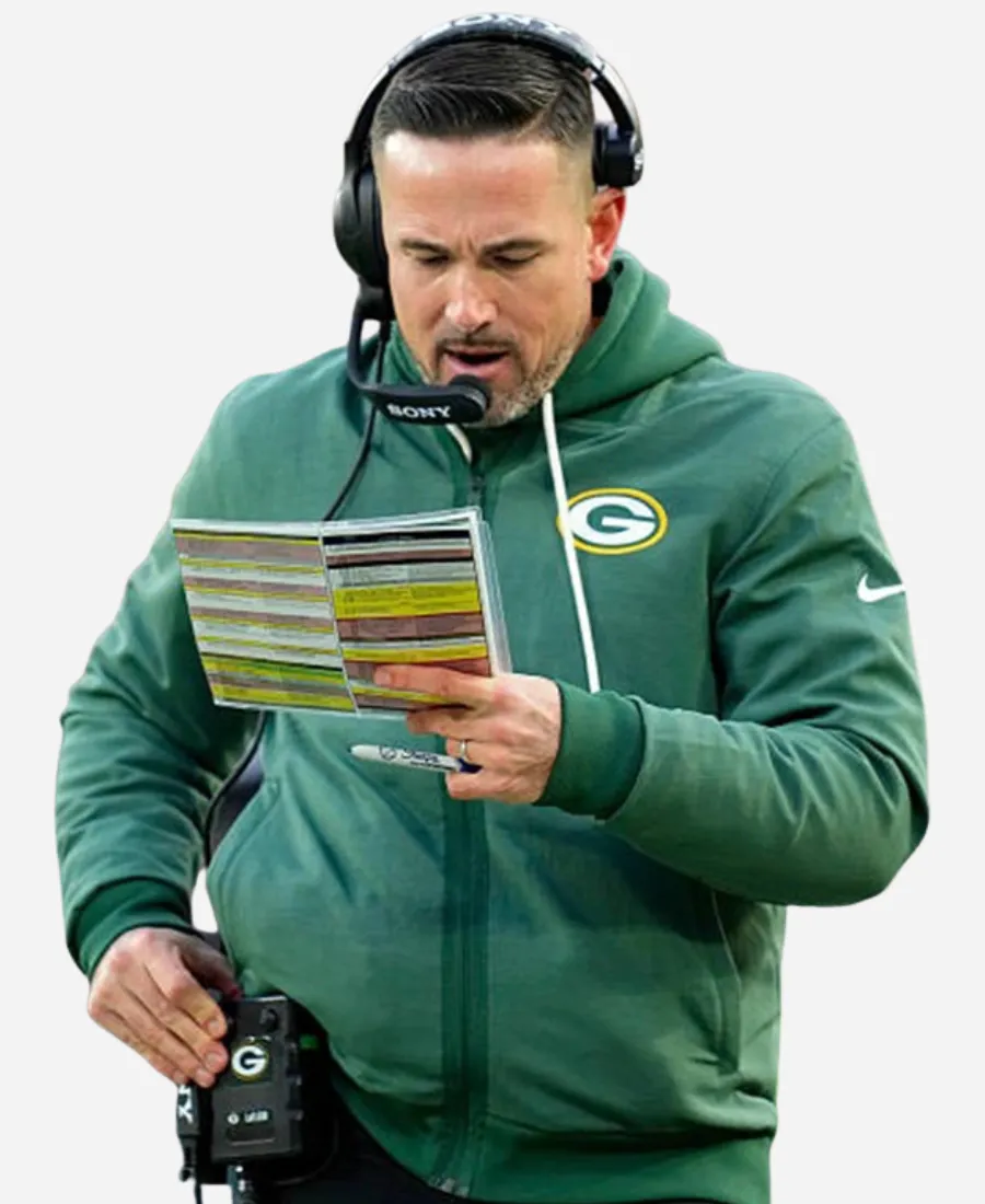 Nike Matt LaFleur Green Bay Packers Coach 2025 Sideline Green Bomber Hooded Jacket