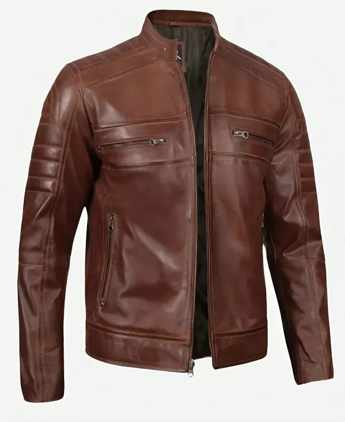Men’s Cafe Racer Brown Leather Jacket