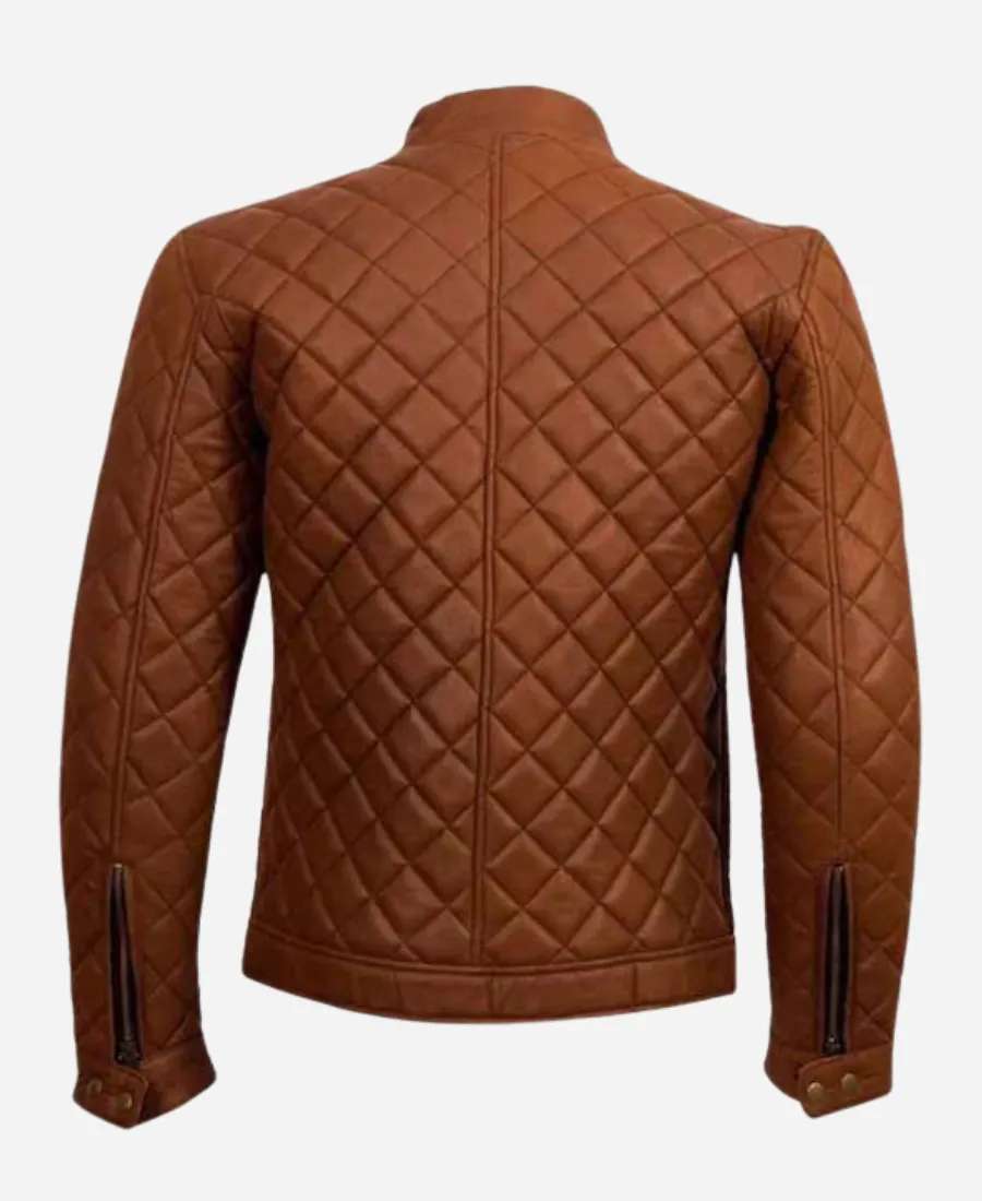 Men’s Decant Slim Fit Quilted Biker Tan Brown Leather Jacket