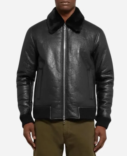 Men’s Brown Bomber Leather Jacket with Rib Collar