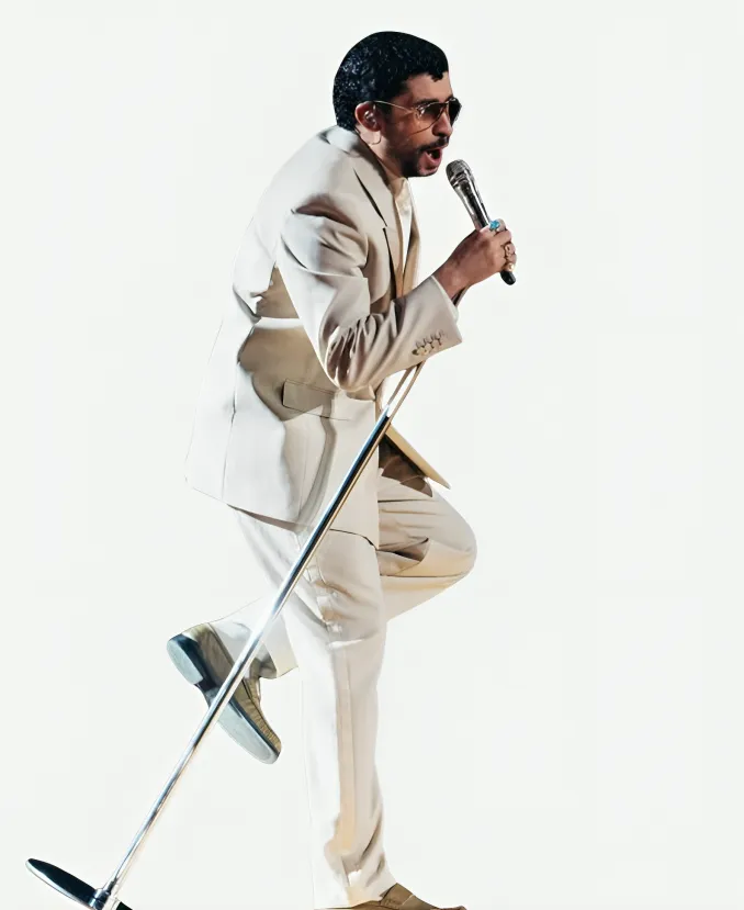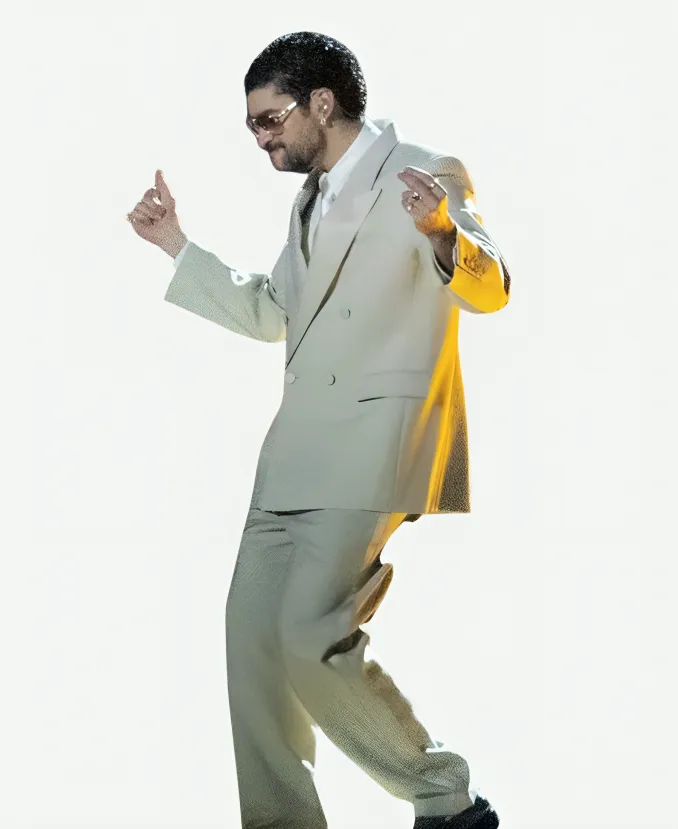 Step into concert-ready couture by donning the trendy Mexico Tour 2026 Bad Bunny Suit. A suit that helps you stylishly celebrate Debí Tirar Más Fotos World Tour, the sixth concert tour by Puerto Rican rapper Bad Bunny. Yes, for you all, especially for the fans of Bad Bunny and style seekers. The Jacket Era is here with this alluring beige double-breasted suit. Furthermore, this sassy beige suit comes from the wardrobe of the handsome Bad Bunny. He wears this captivating beige suit during his 2026 Debí Tirar Más Fotos World Tour in Mexico. On the other hand, wearing this breathtaking beige suit, Bad Bunny provides his fans with another fashion essential. So, to channel the bold energy of Bad Bunny’s DTMF World Tour, this famous beige suit is exactly what you need.
