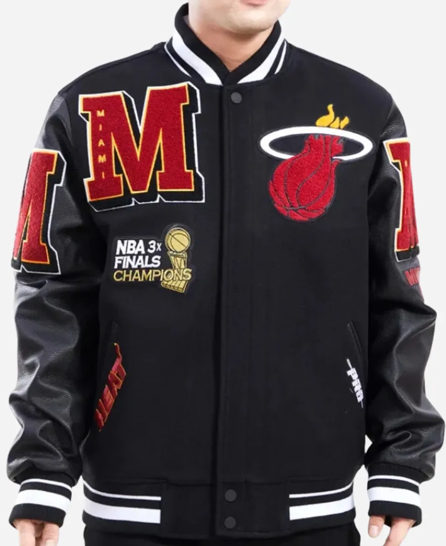 Miami Heat 2026 Mashup Logo Embroidered NBA Finals Champions Black Varsity Jacket