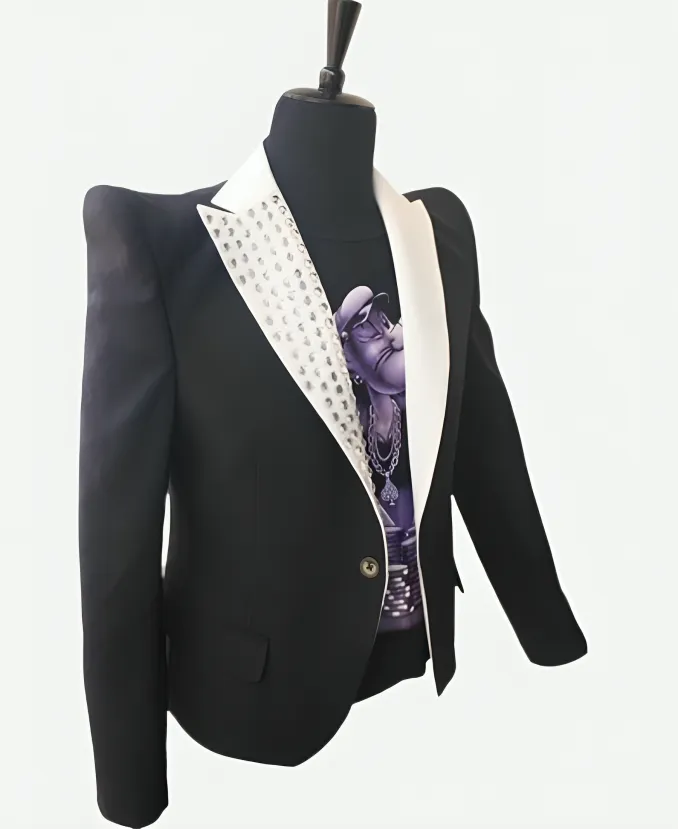 Michael Jackson 2009 $50 Million Concert Payday Black and White Studded Blazer