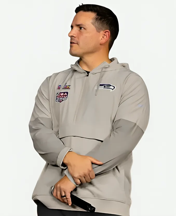 Mike MacDonald Super Bowl LX Opening Night Grey Half-Zip Hooded Jacket