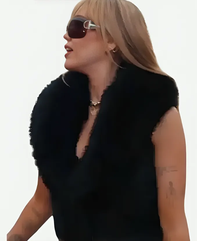 Hannah Montana 20th Anniversary 2026 Miley Cyrus Black Fur Shearling Vest