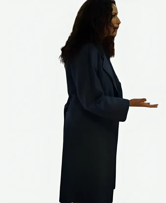 Minnie Driver Run Away 2026 Ingrid Greene Blue Trench Wool Coat