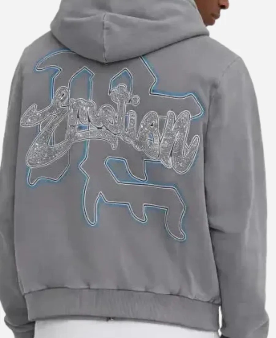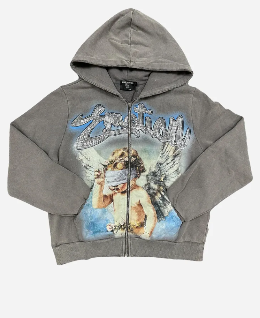 Mixed Emotions Angel Rhinestone Grey Zip-Up hoodie