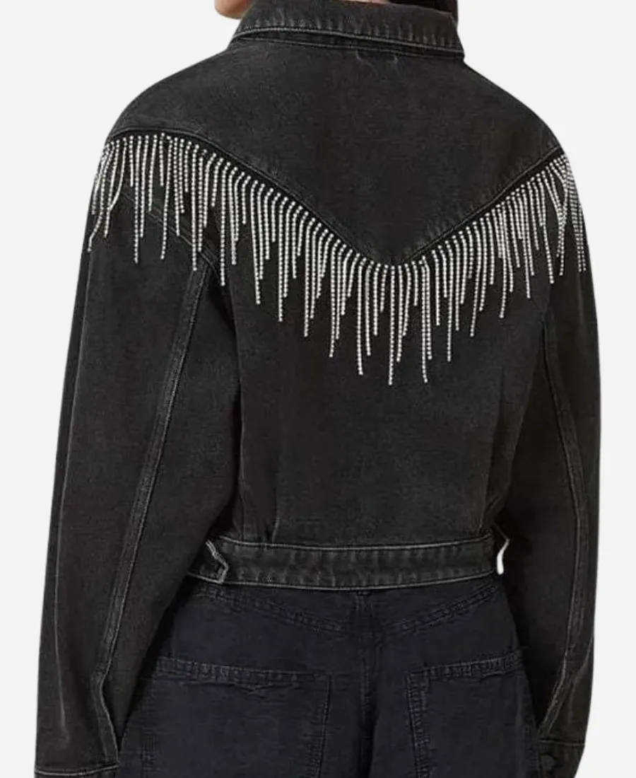 Kaitlin Olson High Potential Tv Series S02 Morgan Gillory Black Denim Fringe Jacket
